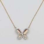 A graceful piece that reflects modern craftsmanship, soft rose gold tones, and a delicate butterfly design that sparkles with effortless charm.