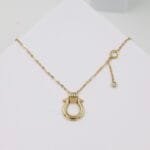 This sleek horseshoe-inspired pendant chain blends minimal design with meaningful detail, making it a versatile piece for daily wear.