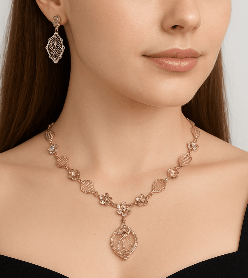 Celebrate your style with this 18kt rose gold necklace set – a creation that reflects beauty, detail, and timeless craftsmanship. ✨