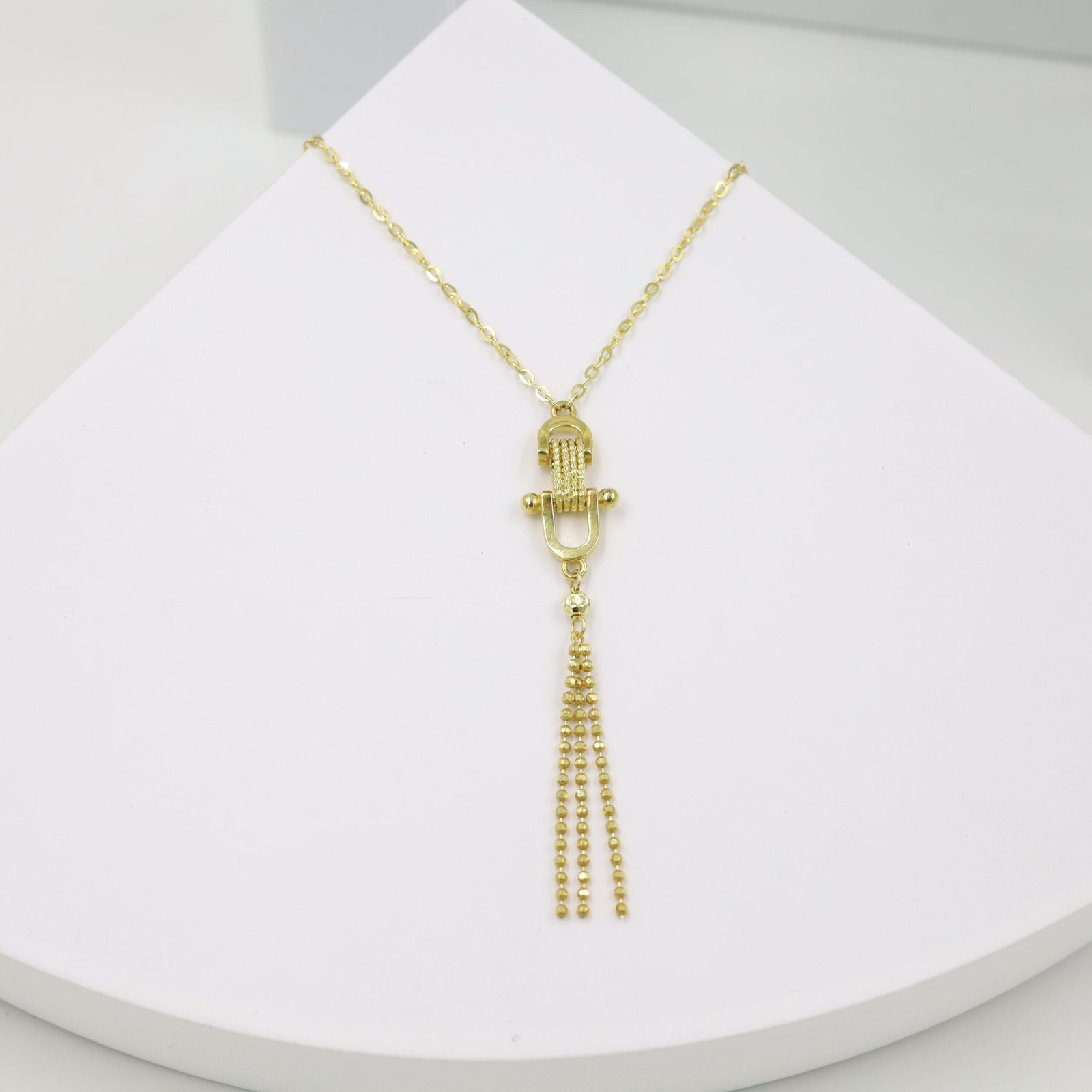 This statement tassel pendant chain is crafted in rich yellow gold, designed to add fluid movement and standout charm to your look.