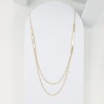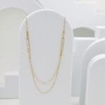This two-layer chain in warm rose gold is designed for those who love minimal styling with a modern edge.